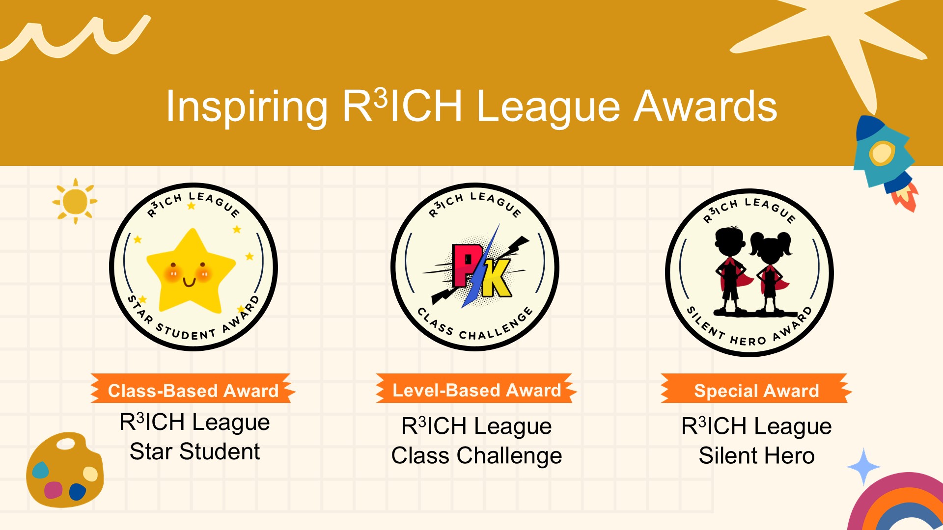 A celebration of our 3-tier Inspiring R³ICH League Awards, honouring students who exemplify our school values in different ways.