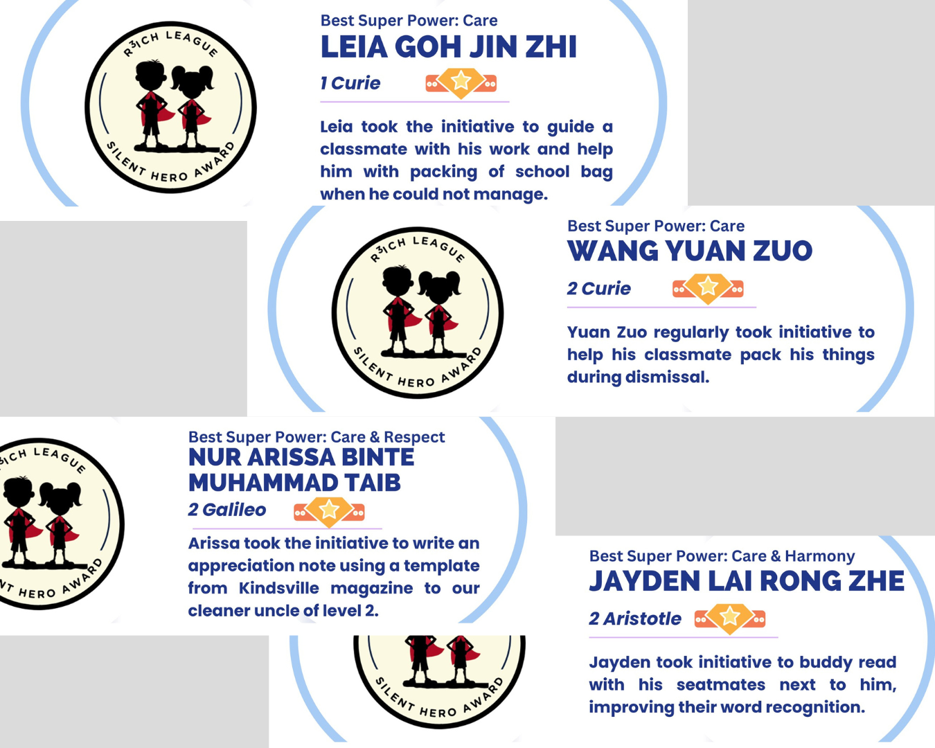 The Silent Hero Award honours students who quietly embody our R³ICH values without seeking attention or praise — our everyday heroes chosen by school leaders, teachers and staff.