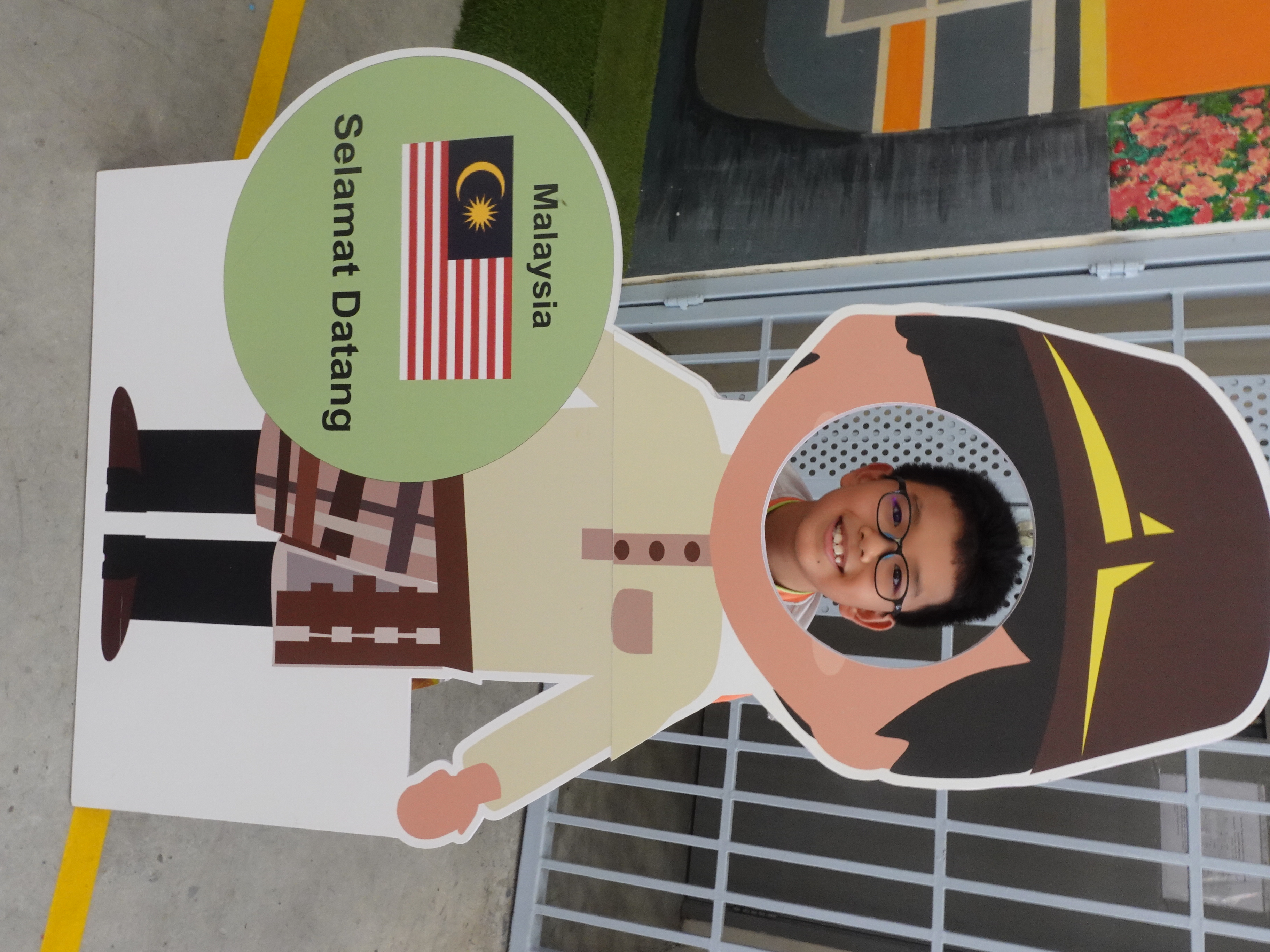 Students having fun with standees showcasing traditional ASEAN outfits (Malaysia)